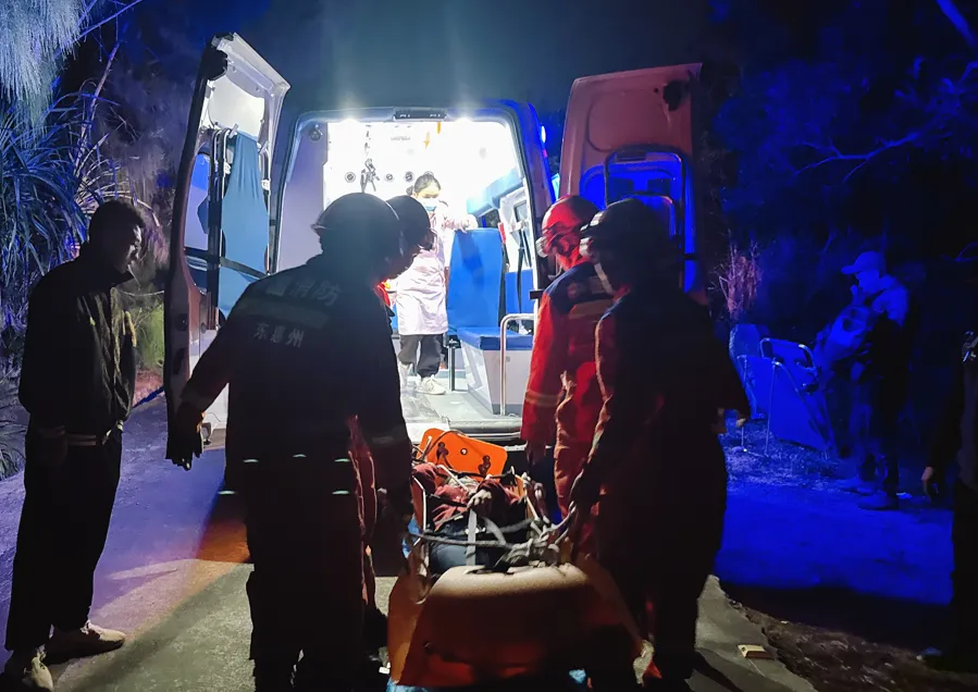消防員們小心翼翼地將傷者固定在擔(dān)架上,隨后沿著陡峭山體緩慢下行。經(jīng)過(guò) 3 個(gè)多小時(shí)的救援,成功將被困人員抬至山腳,并移交給現(xiàn)場(chǎng)的醫(yī)護(hù)人員。