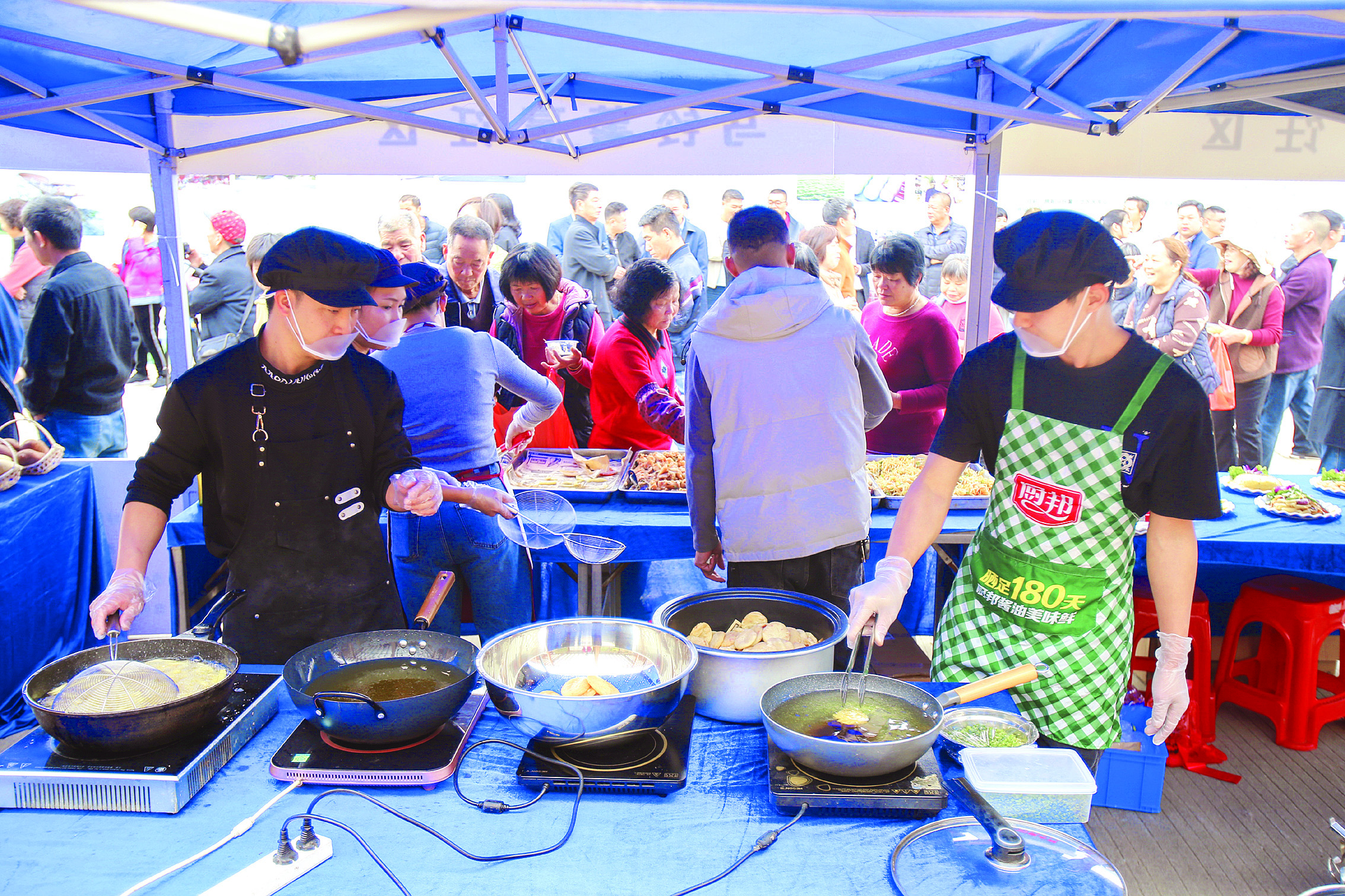 活動現(xiàn)場烹飪馬鈴薯菜肴并提供試吃;葜輺|江圖片社供圖