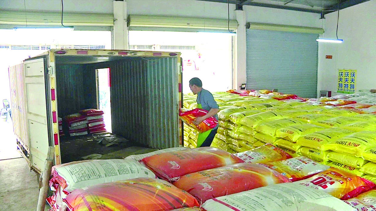 農資網(wǎng)點工人正在運送農資。惠州日報記者蔡偉健 攝