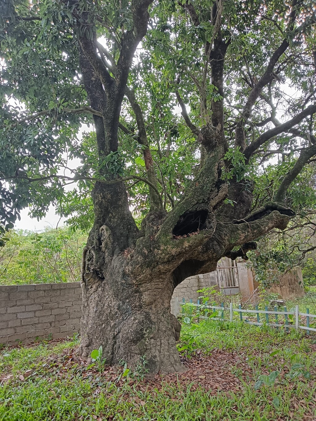 在惠東縣多祝鎮(zhèn)上圍村西枝江畔,有一片樹齡普遍超過100年的古荔枝林,古荔枝樹郁郁蔥蔥,蔚為壯觀。進入古荔枝林深處,有一棵蒼老的荔枝樹枝繁葉茂,遮天蔽日,令人驚嘆。古樹旁豎立的一塊碑牌顯示,這棵古老的荔枝樹為仙婆果,樹齡有700年。
