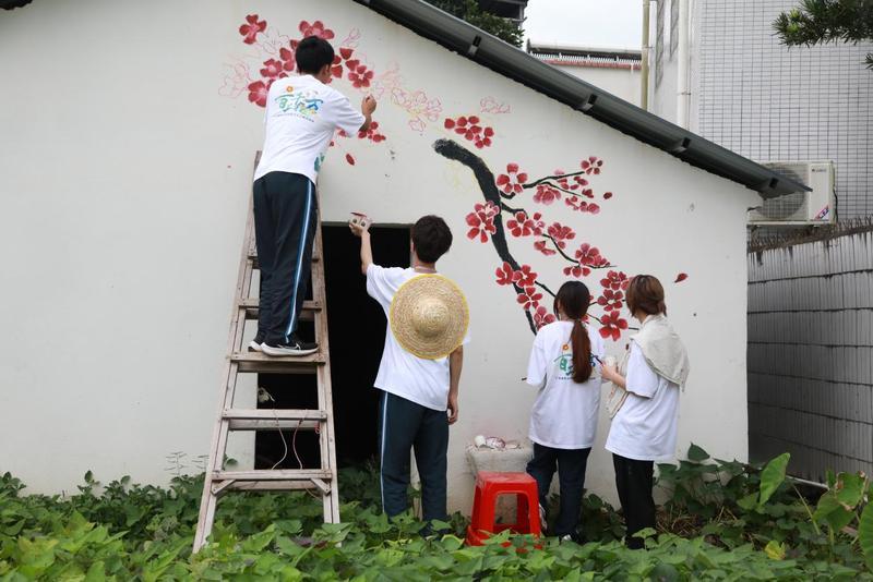 青年學(xué)子主動承接墻繪任務(wù),為鄉(xiāng)村顏值“增色”;葜萑請笥浾哔嚱鹄 攝