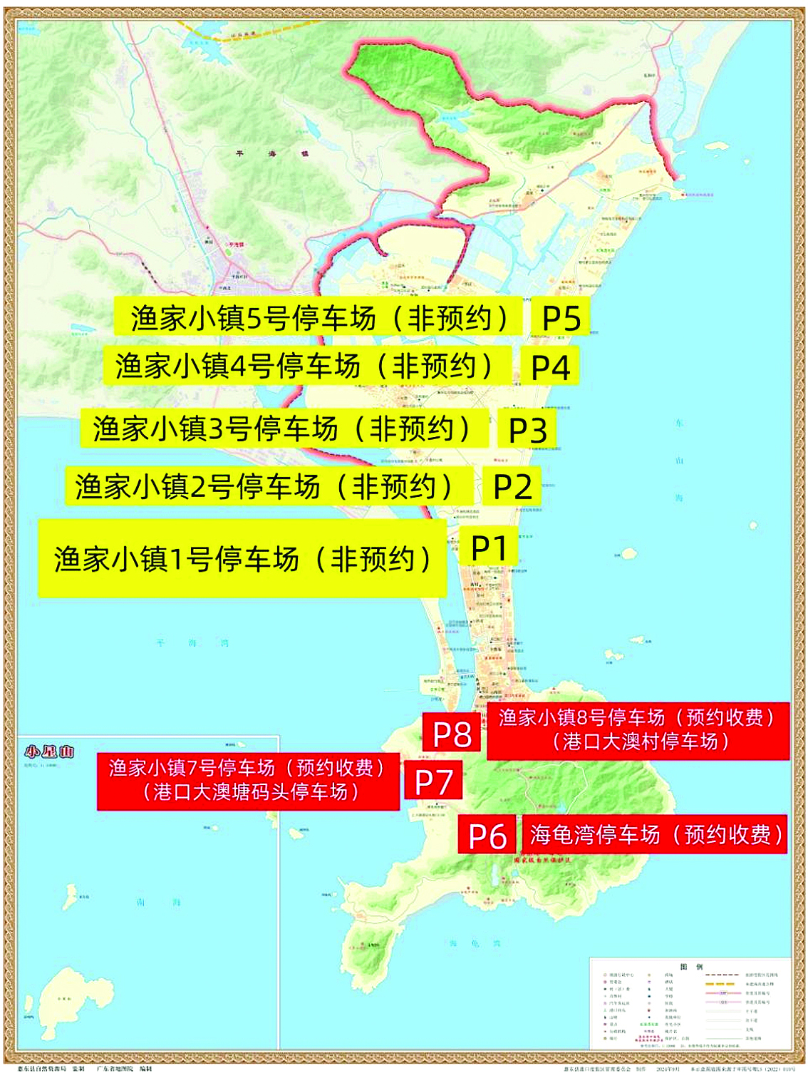 2025年國慶節(jié)、中秋節(jié)假期海龜灣景區(qū)及周邊停車場(chǎng)示意圖。 惠東縣港口度假區(qū)管理委員會(huì)供圖