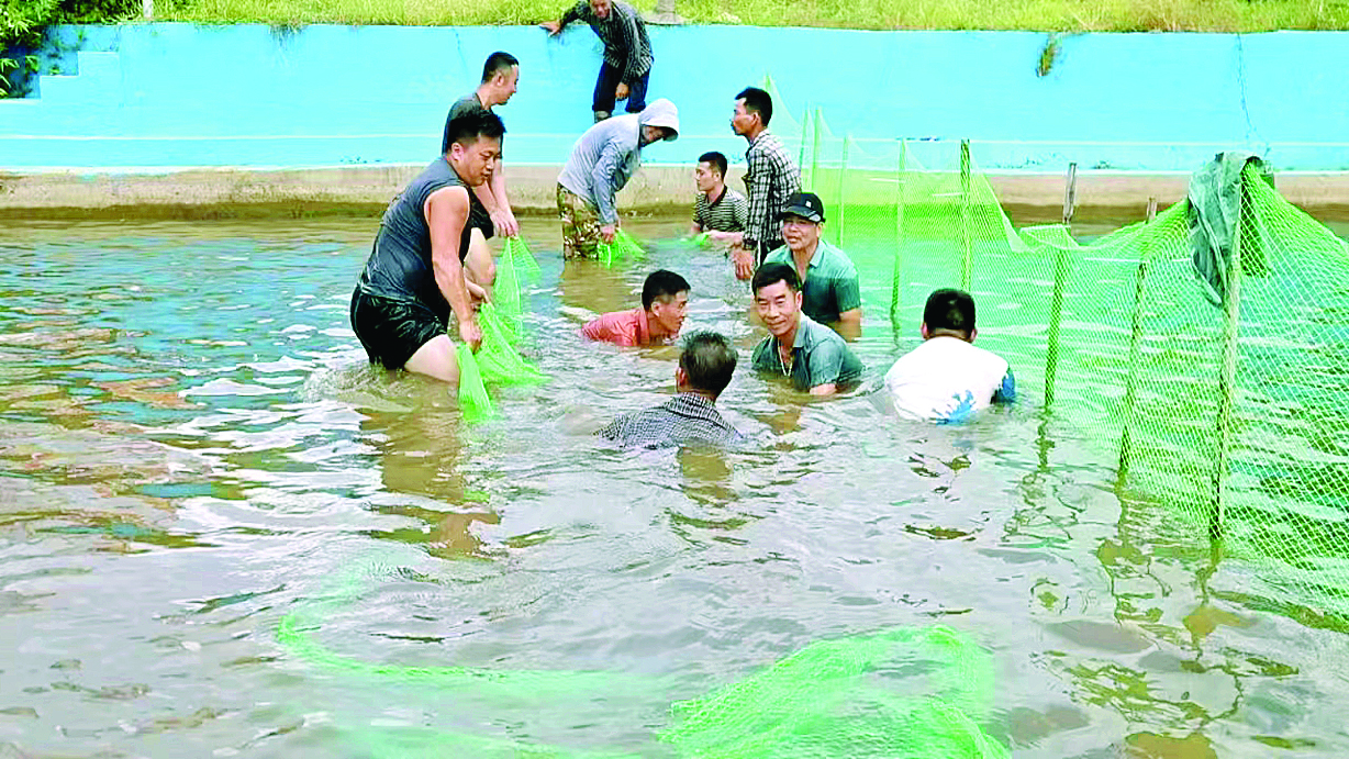 村民體驗摸魚樂趣;葜萑請笥浾哔嚱鹄 通訊員馬觀英 攝