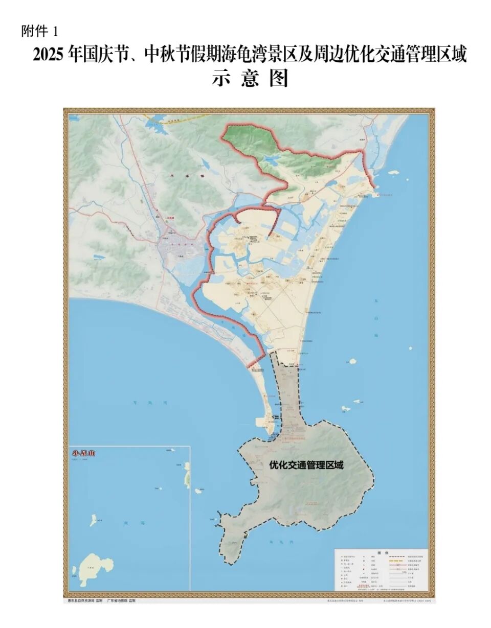 。ǘ╊A約停車服務。實施優(yōu)化交通管理期間,進入管理區(qū)域的7座及以下機動車,通過“惠州海龜灣”訂閱號預約3個收費停車場,分別為海龜灣停車場和漁家小鎮(zhèn)7號、8號停車場。