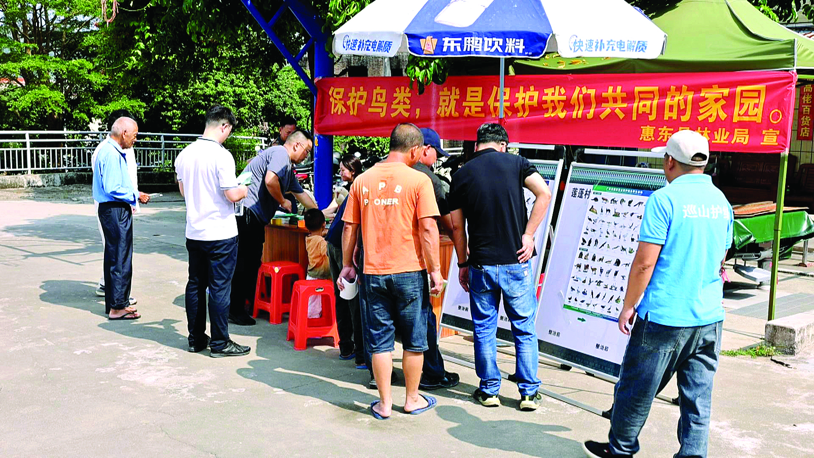 日前,惠東縣在稔山鎮(zhèn)蓮蓬村蘇茅埔村民小組舉行愛鳥護(hù)鳥宣傳活動(dòng),切實(shí)提高群眾保護(hù)野生鳥類的意識(shí)。活動(dòng)現(xiàn)場,惠東縣林業(yè)局工作人員擺放了不少關(guān)于國家一級、二級保護(hù)野生動(dòng)物宣傳資料,尤其是國家重點(diǎn)保護(hù)野生鳥類的小冊子、海報(bào)以及法律法規(guī)宣傳資料等,吸引了不少村民觀看。