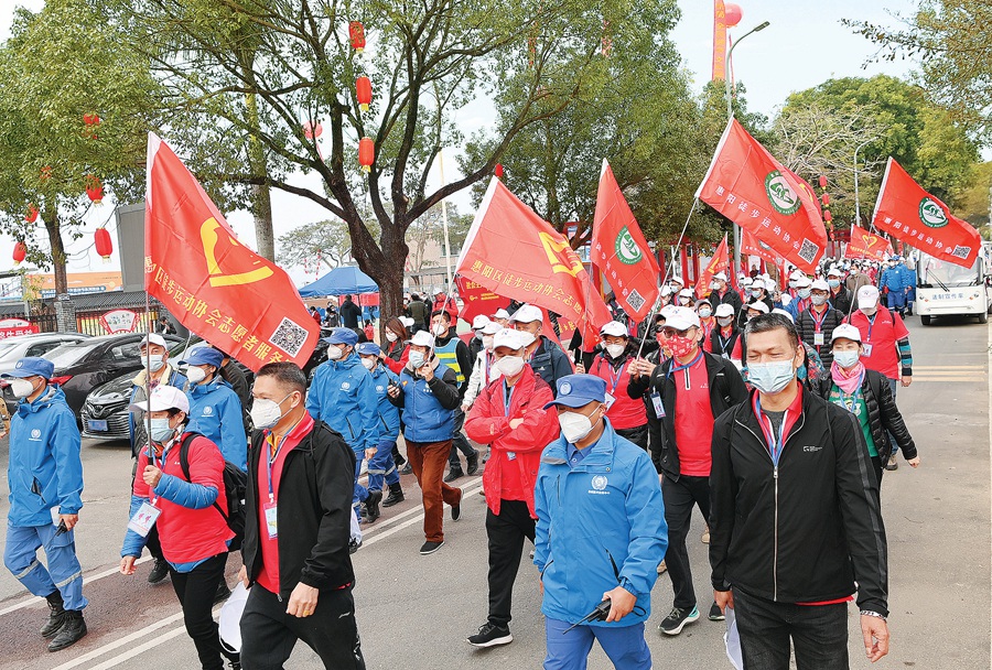 元旦當(dāng)日上午,天氣晴好,陽光明媚。位于惠陽區(qū)平潭鎮(zhèn)的新圩村文化廣場內(nèi)人聲鼎沸,彩旗飄飄,數(shù)百名徒步愛好者們整裝待發(fā),準備以健康徒步的方式迎接新年的到來。