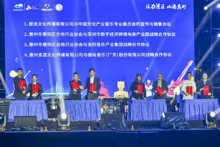 活動(dòng)現(xiàn)場(chǎng),惠陽吉他行業(yè)協(xié)會(huì)與洛陽音樂產(chǎn)業(yè)集團(tuán)、深圳市數(shù)字經(jīng)濟(jì)跨境電商產(chǎn)業(yè)園,惠州吉荔文化傳播有限公司與德尚音樂(廣東)股份有限公司,壁虎文化傳播有限公司與中國(guó)文化產(chǎn)業(yè)音樂專業(yè)委員會(huì),正式簽署戰(zhàn)略合作協(xié)議,旨在加強(qiáng)與吉他行業(yè)上下游緊密合作,延伸吉他產(chǎn)業(yè)發(fā)展鏈條。