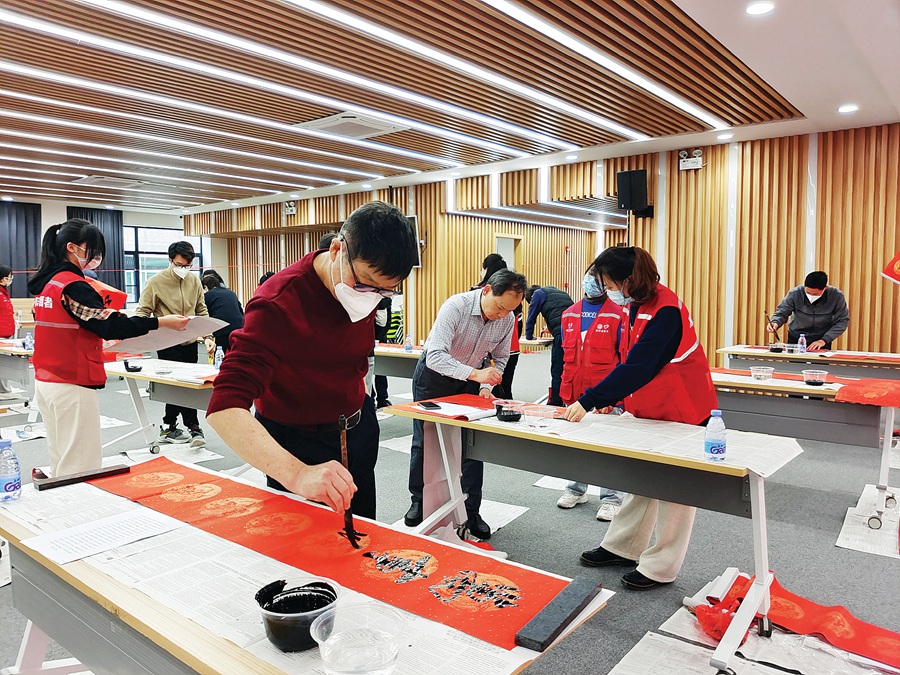 惠州日?qǐng)?bào)訊 (記者許文昌 通訊員潘愛(ài)清)新春佳節(jié)來(lái)臨之際,日前,惠陽(yáng)區(qū)在“雙中心”新時(shí)代大講堂舉行新時(shí)代文明實(shí)踐暨送福到家活動(dòng)。活動(dòng)現(xiàn)場(chǎng),長(zhǎng)桌排開(kāi),筆墨鋪就,志愿者從旁協(xié)助,書(shū)法家們揮毫潑墨,一副副寓意吉祥的春聯(lián)躍然紙上,將真摯祝福寫(xiě)進(jìn)春聯(lián),把誠(chéng)摯祝愿送入萬(wàn)家。據(jù)了解,惠陽(yáng)區(qū)文明辦聯(lián)合相關(guān)部門(mén)已累計(jì)舉辦3期為市民送福到家活動(dòng),得到惠陽(yáng)市民的廣泛好評(píng)。有需要的市民可通過(guò)“惠陽(yáng)區(qū)雙中心”微信公眾號(hào)進(jìn)行預(yù)約領(lǐng)取,也可通過(guò)所在社區(qū)上門(mén)領(lǐng)取。