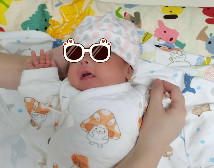 出院時小熙熙飽滿而紅潤的臉蛋。