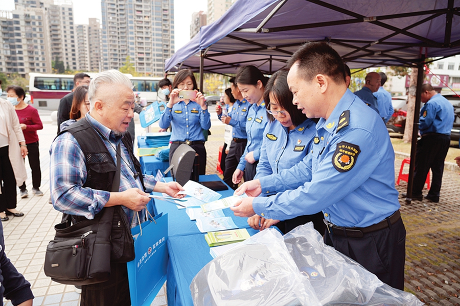 活動現(xiàn)場,惠陽區(qū)城管執(zhí)法局、區(qū)環(huán)衛(wèi)事務(wù)中心設(shè)點(diǎn)向群眾宣傳日常燃?xì)獍踩芾、小區(qū)樹木修剪、廣場舞管理、生活垃圾分類等關(guān)乎群眾切身利益的法律法規(guī)及惠民政策,派發(fā)《惠州市市容和環(huán)境衛(wèi)生管理?xiàng)l例》《惠州市廣場舞活動管理暫行辦法》等宣傳手冊,并為群眾講解政策法規(guī)、解疑答惑。