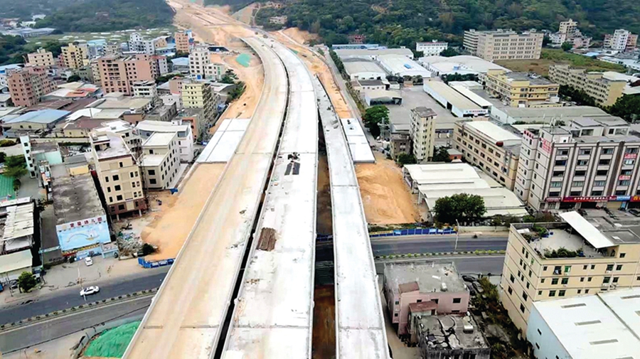 深莞惠紅色干線改建工程(一期)是支撐惠陽(yáng)產(chǎn)業(yè)發(fā)展的重要“經(jīng)濟(jì)走廊”。圖為該項(xiàng)目TJ3標(biāo)段已建成的高架橋。