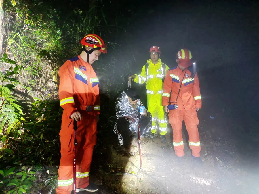 4月3日上午8時許,這名男子自行前往白云嶂盤古廟游玩,在山頂迷路無法下山,被救援人員發(fā)現(xiàn)時,已被困山上一天一夜,身體開始缺水、虛弱、體力透支,但身體未受傷。救援人員在了解被困人員情況后,對其進行安撫,并囑咐其保持體力,保持電話暢通原地等待救援,有突發(fā)情況及時與救援隊聯(lián)系。