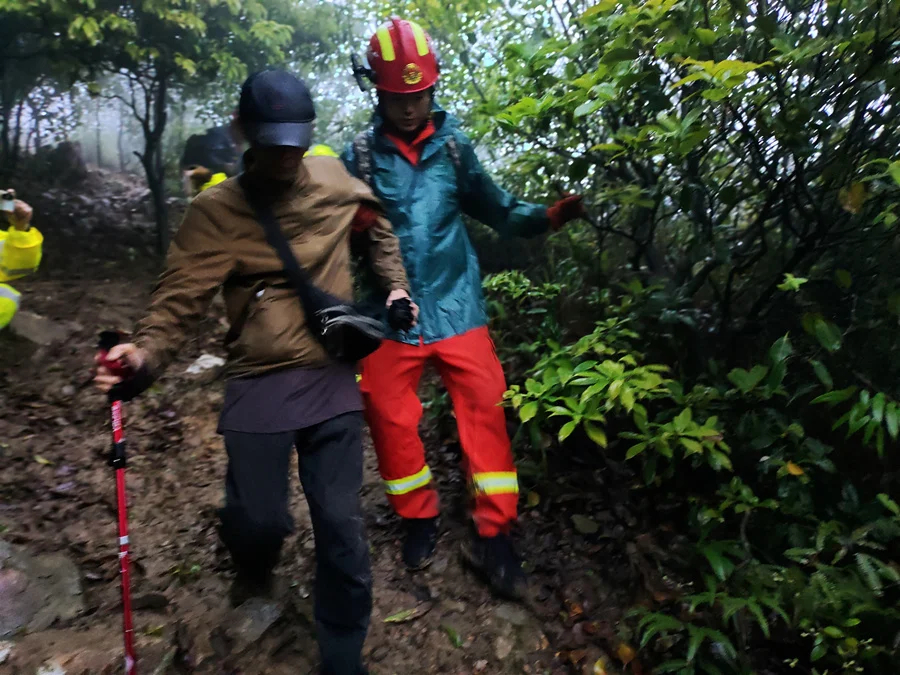 一名中年男子爬上白云嶂盤古廟附近游玩,迷失方向后被困山上一天一夜,身體出現(xiàn)缺水、低溫、體力透支等狀況,曾一度拒絕救援后再次求救。4月4日,惠陽區(qū)新圩鎮(zhèn)專職消防隊聯(lián)合東莞清溪山地救援隊,歷時5個多小時冒雨將該男子成功救出,并送往醫(yī)院進行觀察救治。