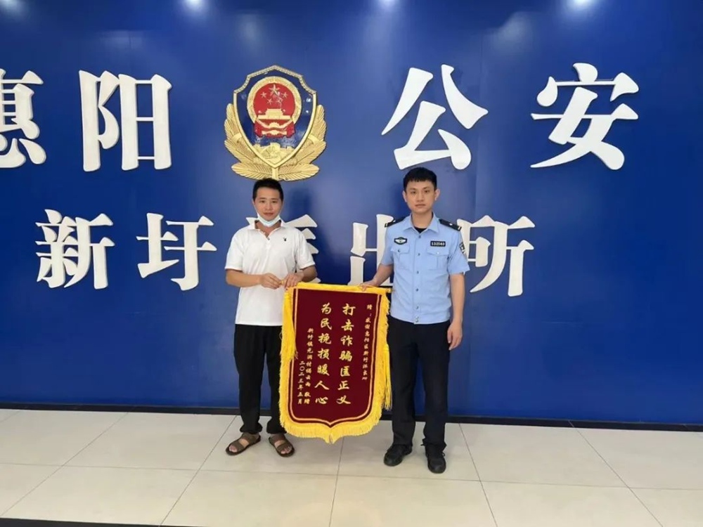 隨著“我為群眾辦實事”活動深入開展,惠陽公安不斷加大反詐宣傳力度和詐騙犯罪打擊力度,全力守護群眾的“錢袋子”。5月24日,揭先生向惠陽公安新圩派出所送來錦旗——“打擊詐騙匡正義,為民挽損暖人心”。在送錦旗的過程中,揭先生不斷感謝新圩派出所為其挽回部分經濟損失,贊揚新圩派出所是真正為群眾做實事,以群眾利益為主的好單位。