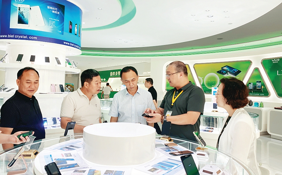 考察組在伯恩光學(xué)(惠州)有限公司了解企業(yè)產(chǎn)品。 惠州日報(bào)記者許文昌 通訊員劉曼麗 攝