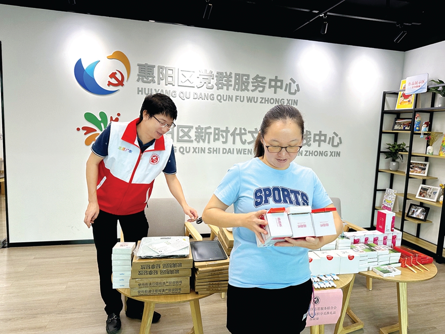 志愿者領(lǐng)取兌換的禮品。 惠州日報記者李芳娟 通訊員陶惠彪 攝