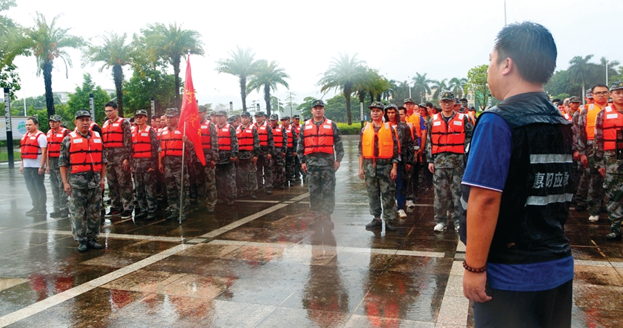 救援人員集結(jié)拉練。惠州日?qǐng)?bào)記者李芳娟 通訊員蘇育華 攝