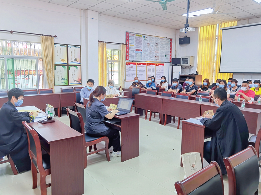 惠陽法院法官到良井鎮(zhèn)矮光村公開審理民事糾紛案件。