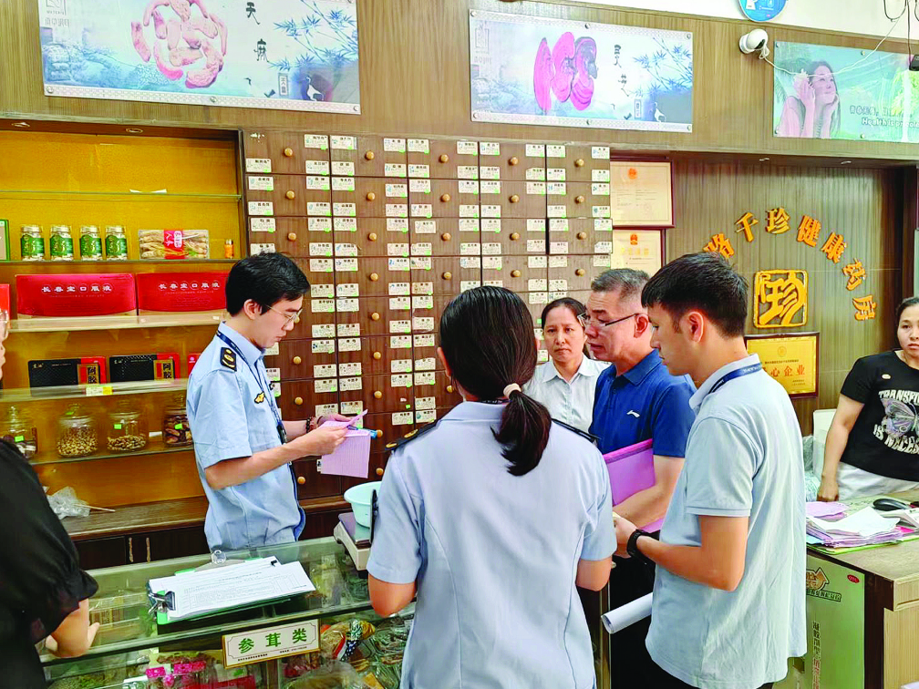 市場監(jiān)管人員在藥店檢查。 惠州日報記者許文昌 通訊員張新華 攝