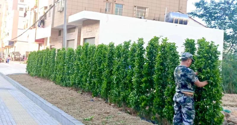 人行道邊上的常綠綠籬長(zhǎng)勢(shì)喜人;葜萑?qǐng)?bào)記者許文昌 通訊員張智軍 攝