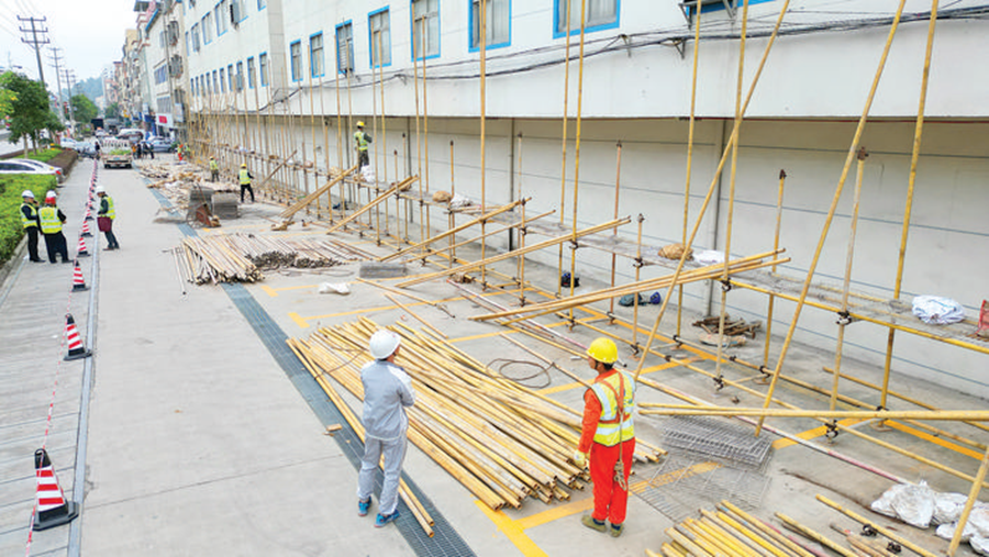 工人對房屋外立面進行改造提升。 惠州日報記者許文昌 通訊員張智軍 李福遇 攝