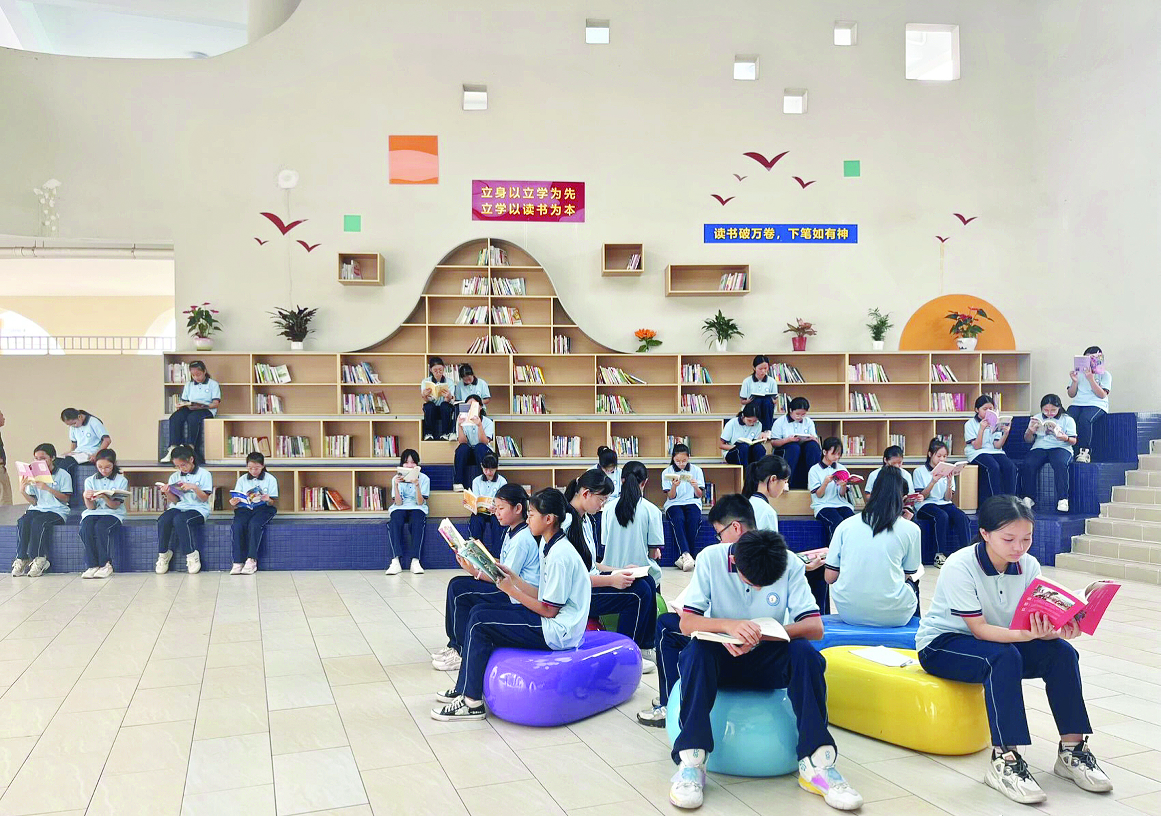 惠陽區(qū)第七中學(xué)教學(xué)樓一樓設(shè)立開放式校園書吧以來,校園里愛讀書、讀好書、善讀書的氛圍越來越濃。2023年,在人大專項(xiàng)資金的幫助下,該校充分利用合理空間,在教學(xué)樓一樓設(shè)立占地約200平方米的“悅”書吧,作為師生學(xué)習(xí)、休憩的重要場所。每到下課時(shí)間,書吧里就聚滿了同學(xué),大家浸潤在書籍的海洋里,利用碎片化時(shí)間進(jìn)行閱讀。