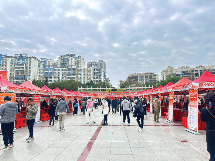 2月27日上午,惠陽(yáng)區(qū)2024年“南粵春暖”“春送崗位”企業(yè)用工現(xiàn)場(chǎng)招聘會(huì)在惠陽(yáng)市政廣場(chǎng)舉行,100余家企業(yè)提供1.2萬(wàn)個(gè)崗位。