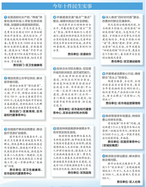 惠州日?qǐng)?bào)訊 (記者黃尉宏)今年1月底舉行的惠陽(yáng)區(qū)六屆人大四次會(huì)議上,經(jīng)過(guò)大會(huì)票決,確定了2024年惠陽(yáng)區(qū)10件民生實(shí)事。日前,惠陽(yáng)區(qū)政府印發(fā)《惠陽(yáng)區(qū)2024年十件民生實(shí)事工作實(shí)施方案》(以下簡(jiǎn)稱“《方案》”),提出要集中力量辦好惠陽(yáng)區(qū)2024年十件民生實(shí)事,列入今年區(qū)政府重點(diǎn)督查和政府部門績(jī)效考核內(nèi)容,由區(qū)委區(qū)政府督查辦全程跟蹤督辦,采取日常監(jiān)督和抽查暗訪相結(jié)合的方式,定期通報(bào)進(jìn)度,確保各項(xiàng)工作按時(shí)推進(jìn)。