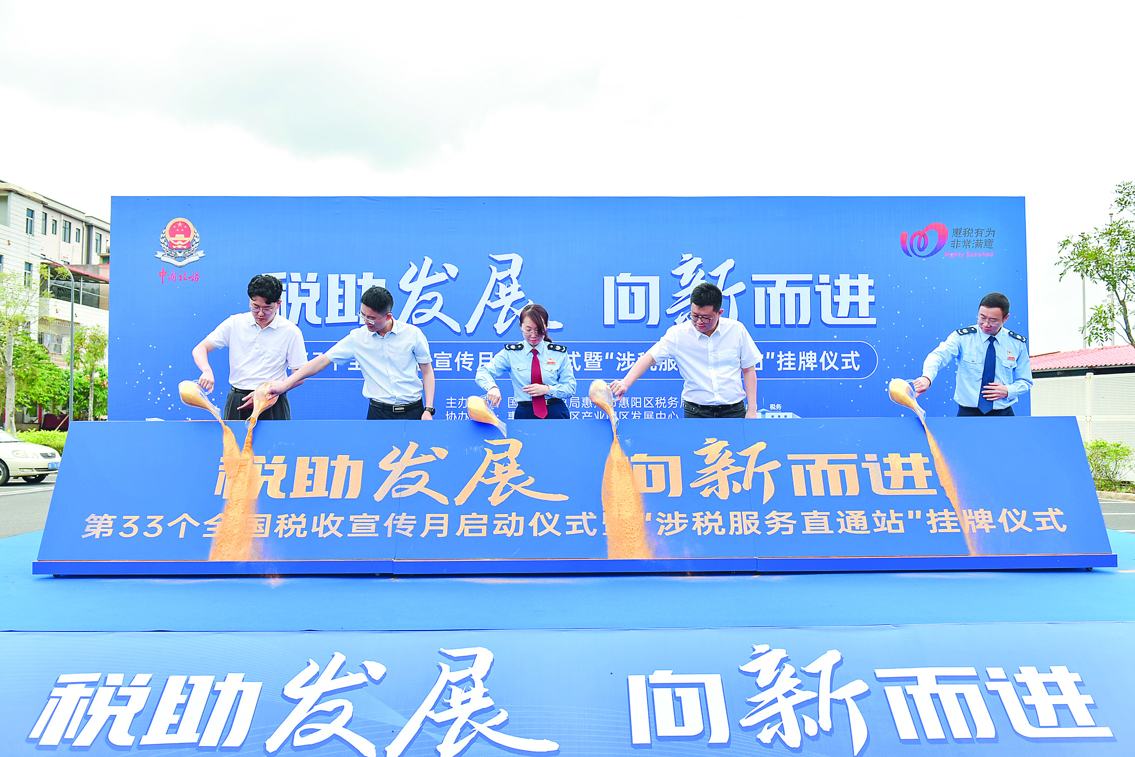 惠州日報訊 (記者黃尉宏 通訊員惠瑞軒 黃鈺穎)最是一年春好處,多彩稅宣惠萬家。4月1日上午,國家稅務(wù)總局惠州市惠陽區(qū)稅務(wù)局(以下簡稱“惠陽區(qū)稅務(wù)局”)在惠陽(象嶺)智慧科技產(chǎn)業(yè)園規(guī)劃館舉行“稅助發(fā)展 向新而進”第33個全國稅收宣傳月啟動儀式暨“涉稅服務(wù)直通站”掛牌儀式。活動現(xiàn)場氣氛熱烈,惠陽區(qū)稅務(wù)局、惠陽區(qū)產(chǎn)業(yè)園區(qū)發(fā)展中心、惠陽區(qū)工商業(yè)聯(lián)合會等有關(guān)領(lǐng)導和稅費服務(wù)體驗師、企業(yè)代表們齊聚一堂,拉開第33個全國稅收宣傳月活動序幕。
