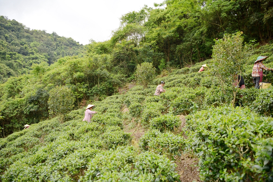 茶農在茶園采摘茶青。惠州日報記者許文昌 通訊員許榮鏡 攝