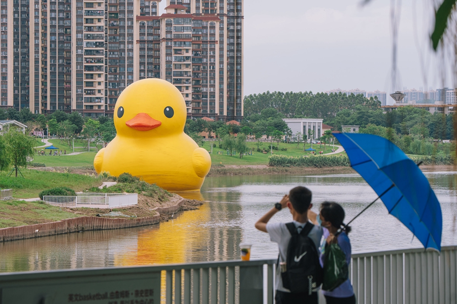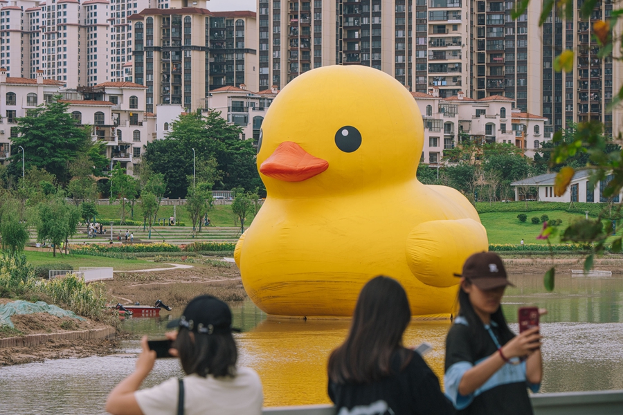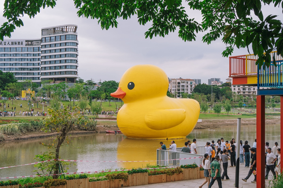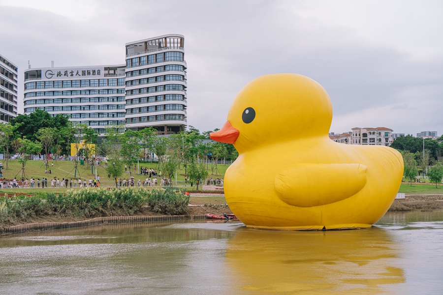 據(jù)介紹,《Rubber Duck(大黃鴨)》是荷蘭藝術(shù)家弗洛倫泰因·霍夫曼(Florentijn Hofman)代表作之一,是時下爆款的公共藝術(shù)作品。在來到惠陽區(qū)前的15年內(nèi),大黃鴨已經(jīng)完成了環(huán)球旅行,成功打卡52個國家和地區(qū),每到一個地方都能引起當(dāng)?shù)氐牟毮,游客排隊去跟它合照,并在社交媒體上引發(fā)熱議,也為當(dāng)?shù)卦谘苌肥圪u、餐飲、住宿、交通等周邊產(chǎn)業(yè),帶來了巨大的經(jīng)濟(jì)效益。