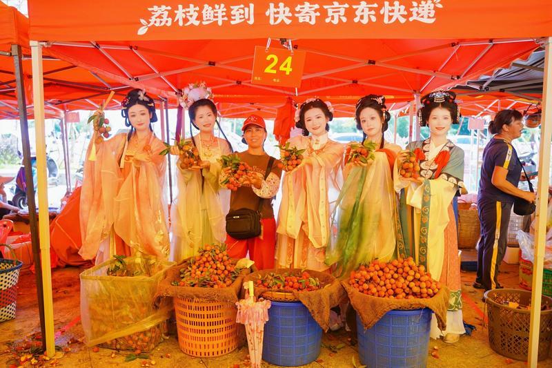 漢服愛(ài)好者在現(xiàn)場(chǎng)為鎮(zhèn)隆荔枝打call。