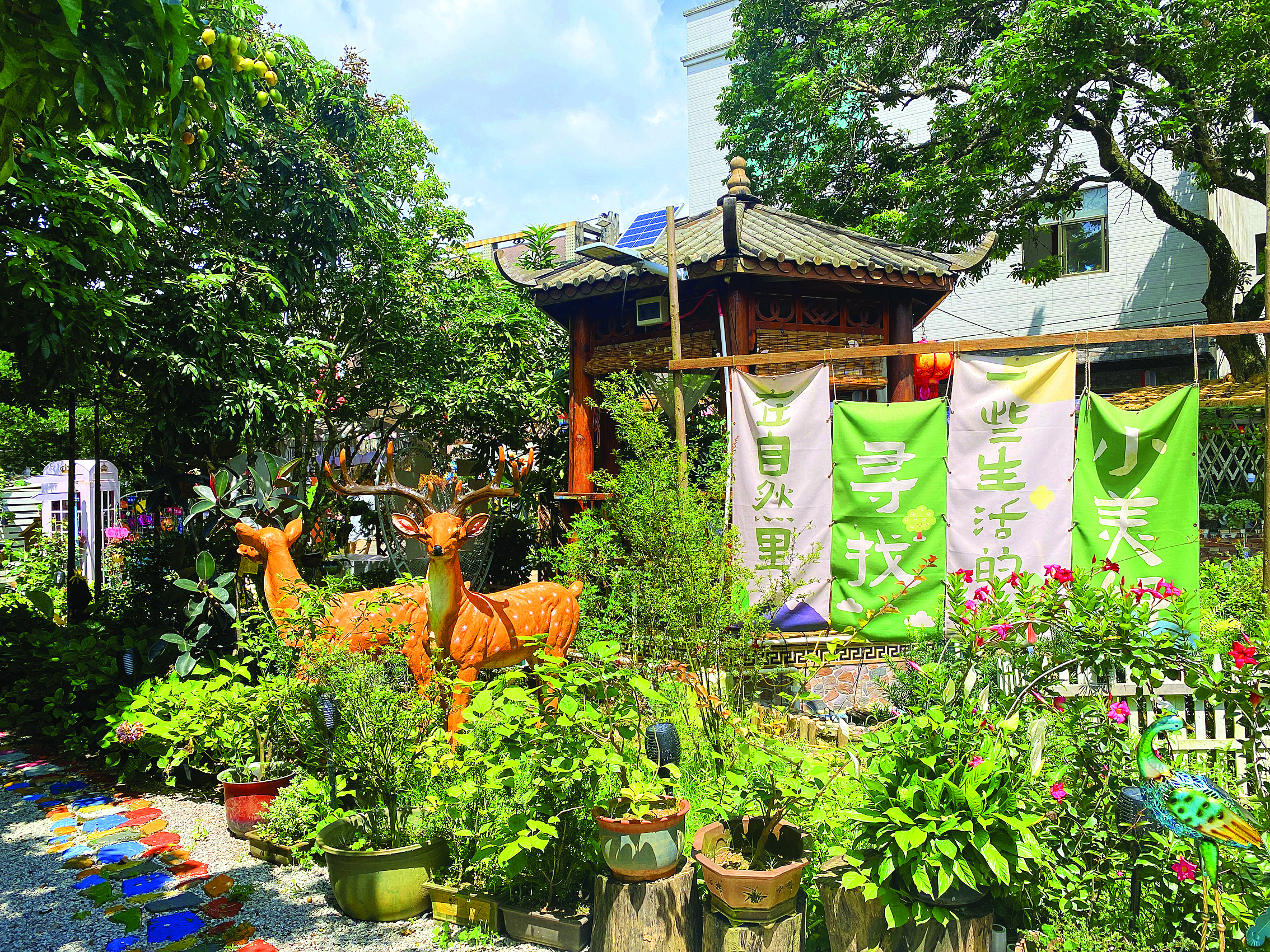 鐵門扇村村民葉德麟和妻子打造的融合客家文化和朝鮮文化的美麗庭院。