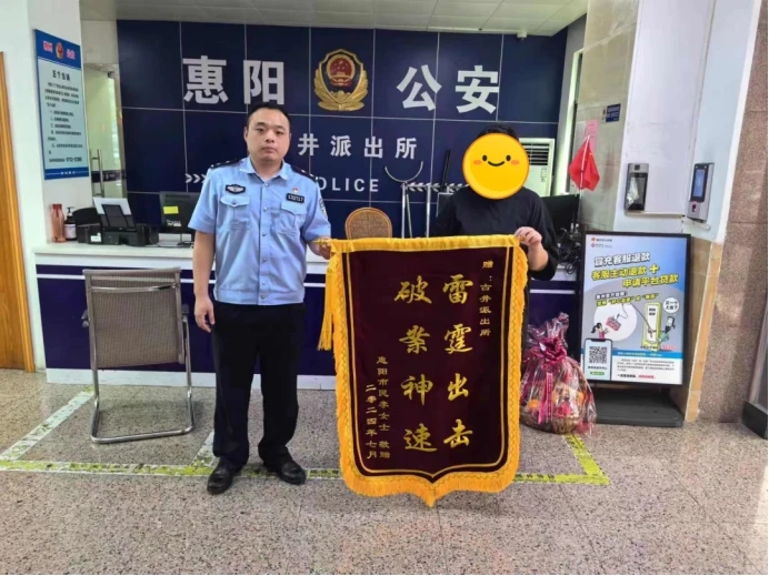 受助群眾專門為惠州公安民警送上錦旗表示感謝。