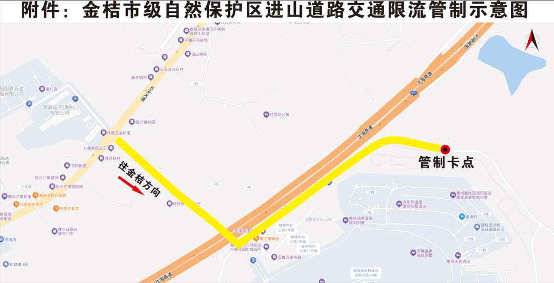 附:金桔市級自然保護區(qū)進山道路交通限流管制示意圖