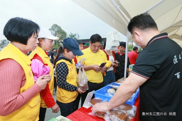 嘉賓購(gòu)買(mǎi)惠陽(yáng)農(nóng)特產(chǎn)品。