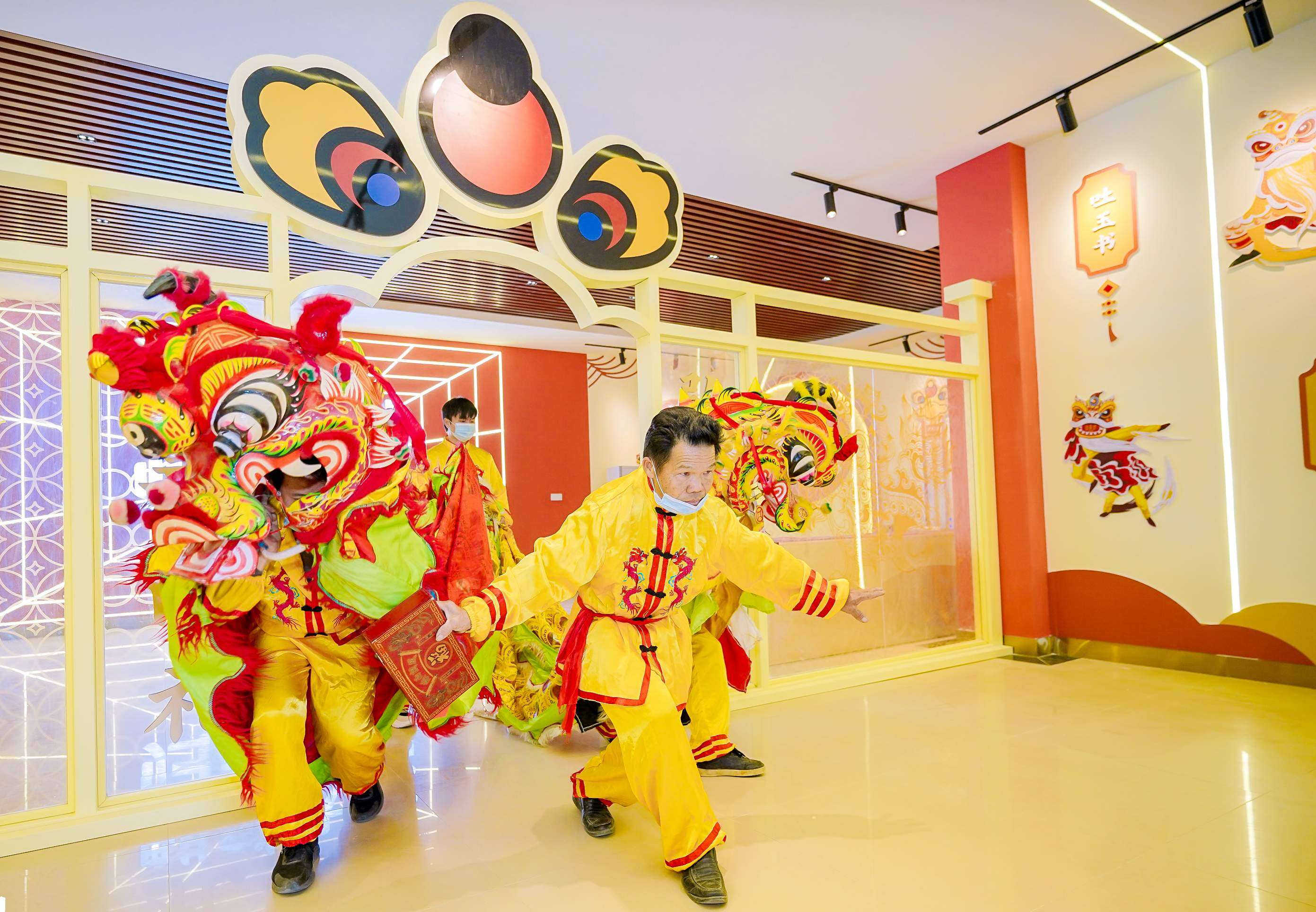 麒麟舞傳承人在沙田鎮(zhèn)麒麟文化館表演。