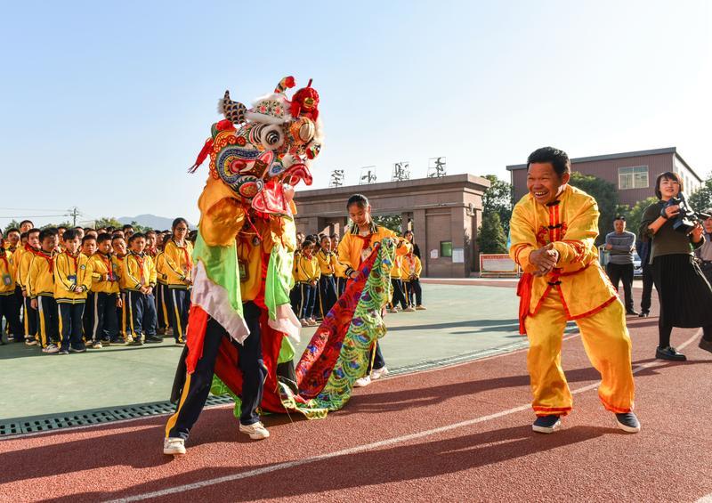 非遺麒麟舞進校園;葜萑請笥浾咴S文昌 通訊員盧嘉敏 攝