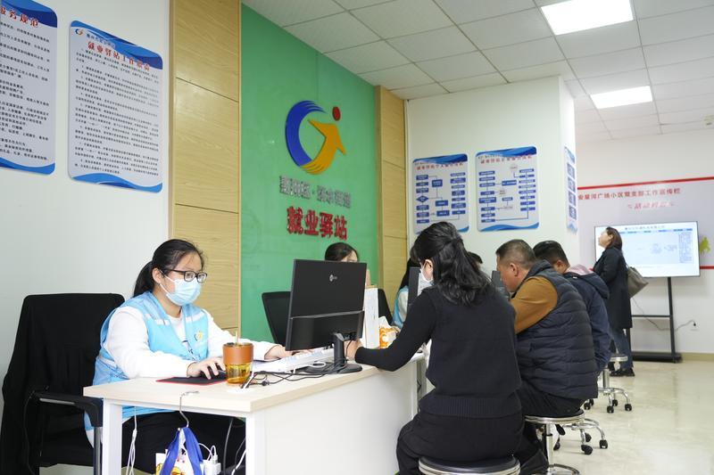 淡水街道就業(yè)驛站為求職者提供政策咨詢、求職登記等服務(wù);葜萑請笥浾咴S文昌 攝