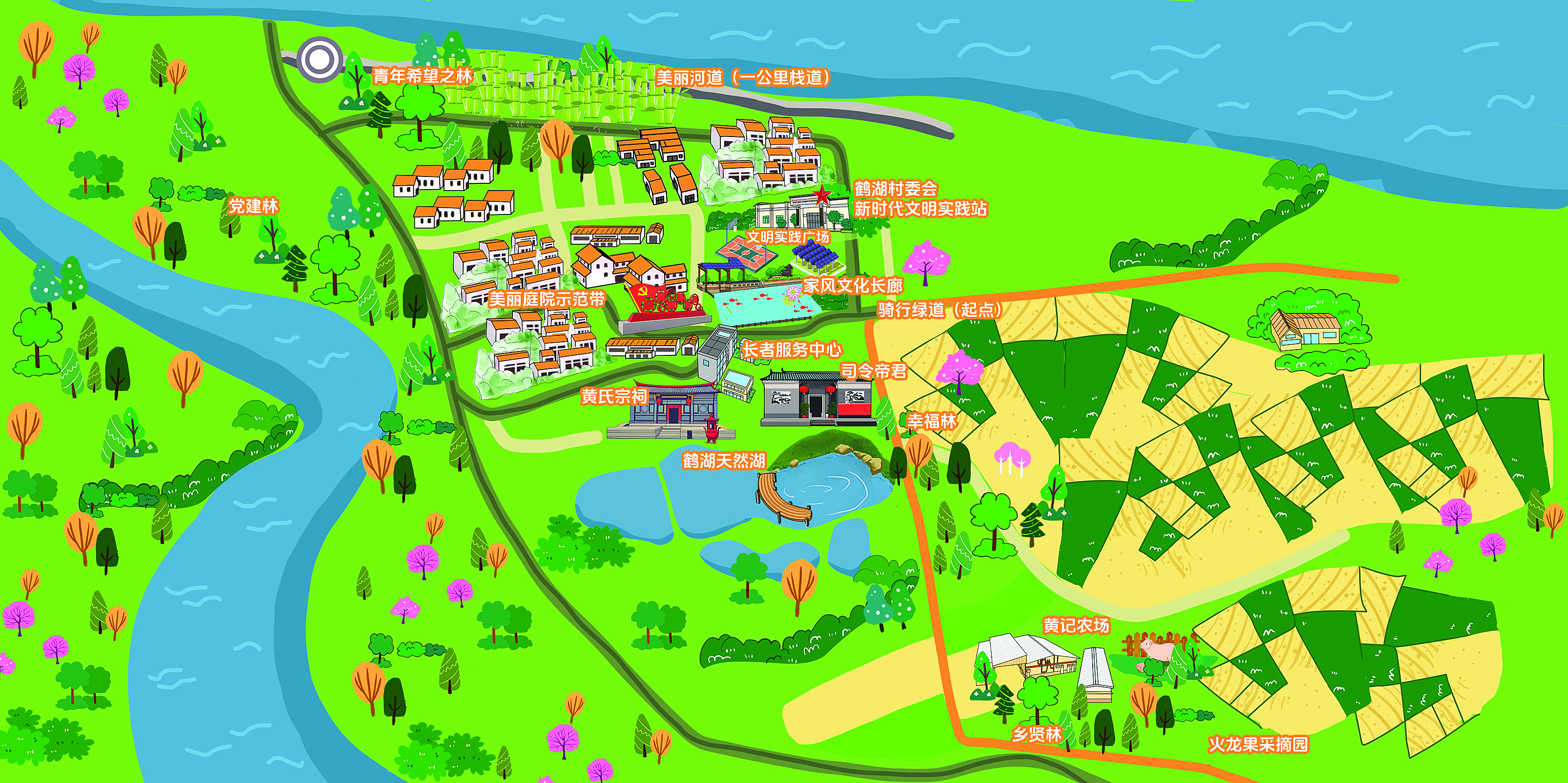 “通過打造,我們的村莊越來越美了!柄Q湖村黨總支書記徐冠嶺表示,村莊以“記得住鄉(xiāng)愁”為發(fā)展定位。日前,該村發(fā)布首張農文旅路線圖,上面詳細標注青年希望之林、美麗庭院示范帶、家風文化長廊、文明廣場、騎行道、鶴湖天然湖、黃氏宗祠、賢林、采摘園等地方,為游客勾勒出一幅“按圖索驥”的鄉(xiāng)村游玩指南。這也標志著鶴湖村農文旅融合邁入新階段。