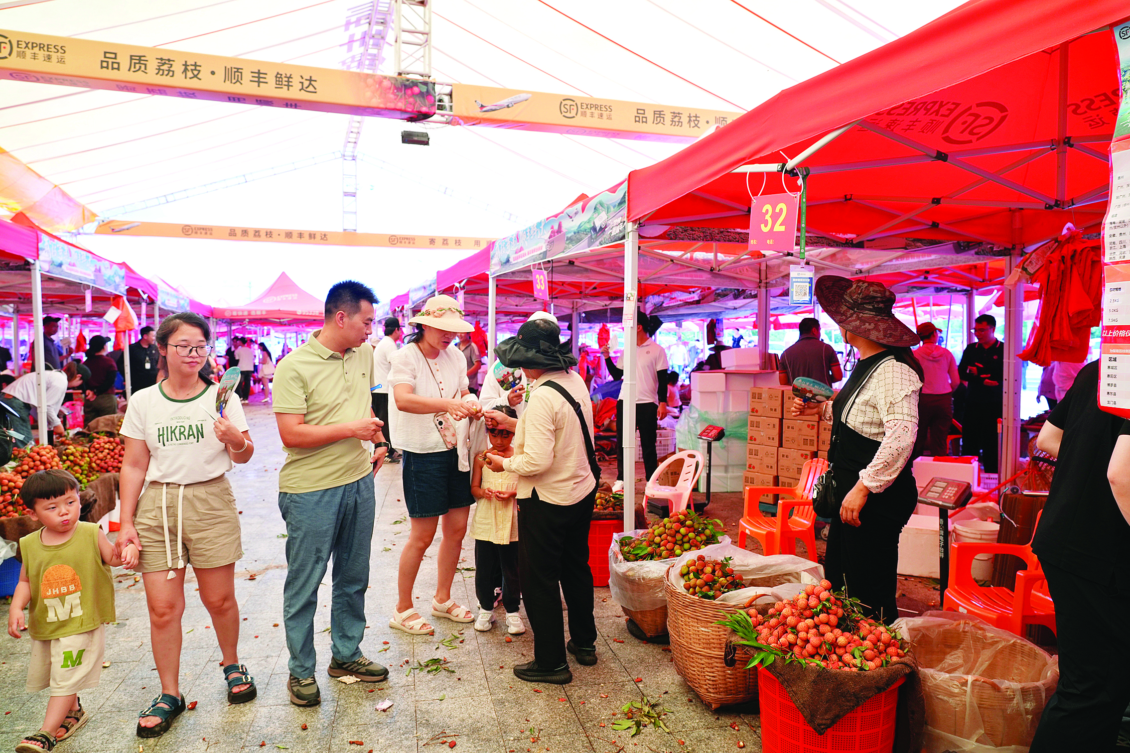 在RCEP廣東惠州(鎮(zhèn)隆)荔枝交易中心內(nèi),市民來嘗鮮荔枝早果;葜萑請笥浾咴S文昌 攝