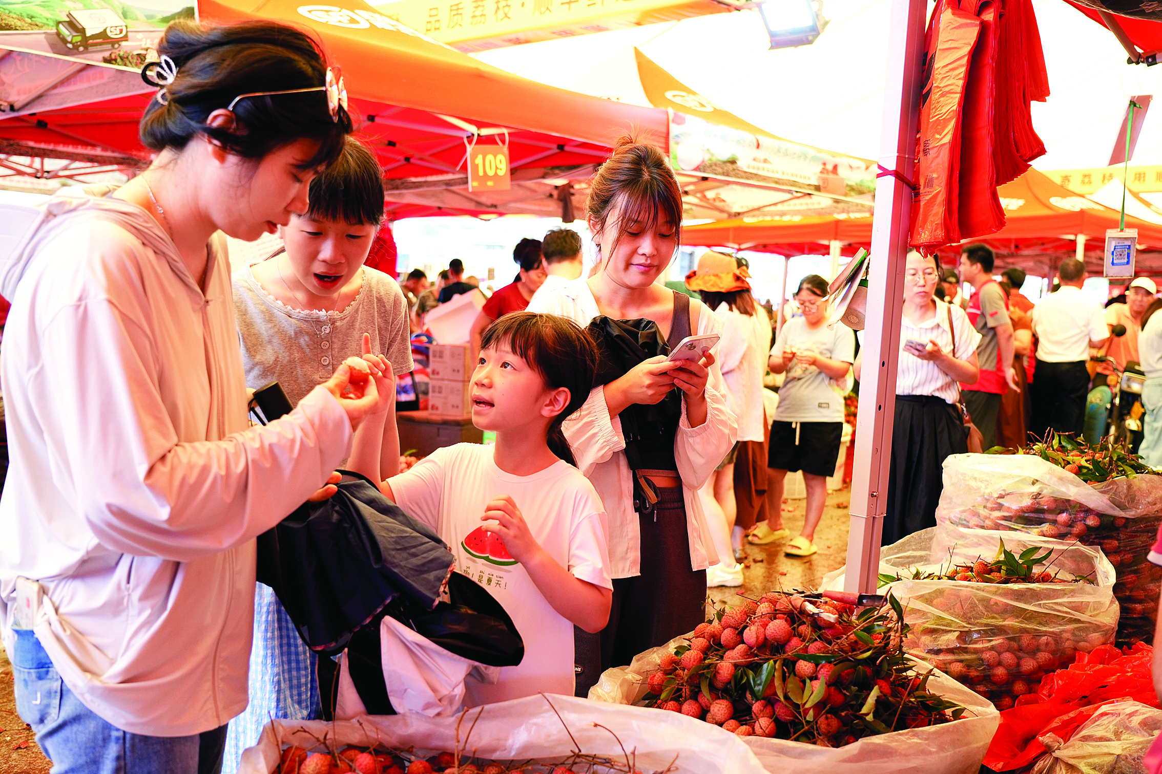 當前,鎮(zhèn)隆荔枝陸續(xù)上市銷售,RCEP廣東惠州(鎮(zhèn)。├笾灰字行拿刻鞜狒[非凡,果農(nóng)采摘荔枝后送到這里售賣;蓐枀^(qū)農(nóng)產(chǎn)品質(zhì)量安全中心對入場前的荔枝開展快速檢測,檢測合格后方能上市。劉榮耀表示:“根據(jù)荔枝用藥情況,對上市前的荔枝產(chǎn)品開展速測,做到‘用什么藥檢什么藥’!