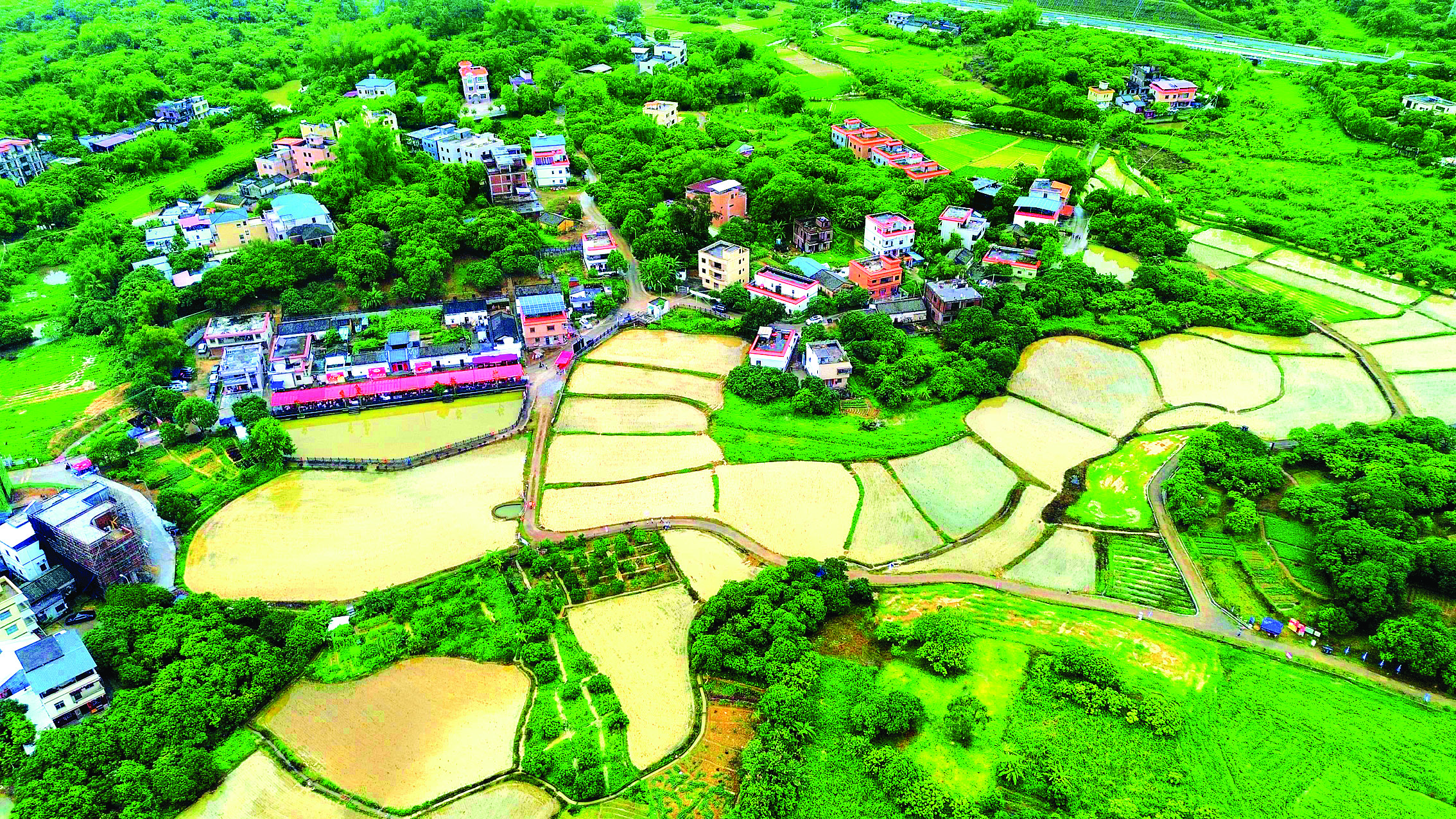 沙田鎮(zhèn)推動(dòng)作物輪作以提高各種作物的產(chǎn)量。這是航拍東澳村稻田。(資料圖片)