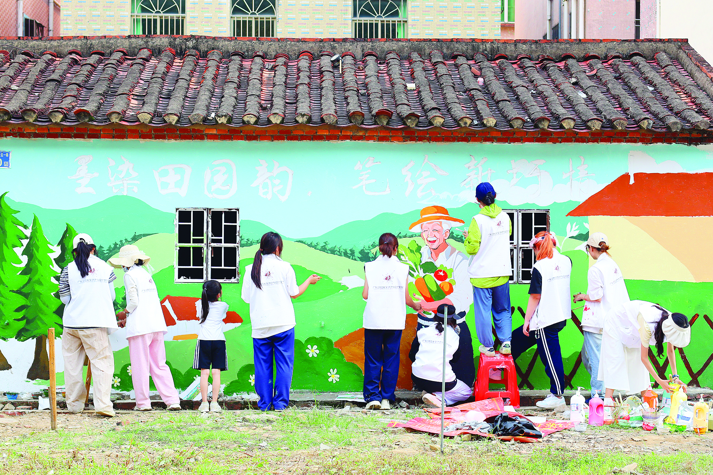 廣東財經(jīng)大學(xué)大學(xué)生刷新新圩鎮(zhèn)村莊顏值;葜萑請笥浾唿S尉宏 攝