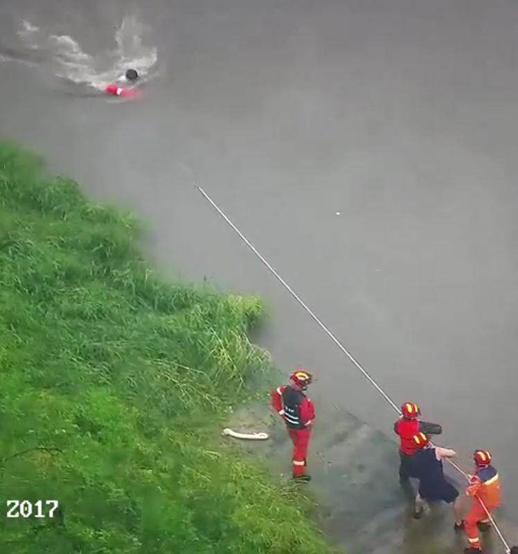 “到達(dá)現(xiàn)場(chǎng)時(shí),心一下子提到了嗓子眼!笨吹狡诤用娴呐,參與救援的隊(duì)員回憶道。12時(shí)09分,救援隊(duì)伍抵達(dá)現(xiàn)場(chǎng),通過肉眼觀察和街道指揮中心 “高空鷹眼” 實(shí)時(shí)監(jiān)測(cè)發(fā)現(xiàn),落水者已被湍急的河水沖到河中央,在洪水中漂浮。持續(xù)的強(qiáng)降雨讓淡水河流水位暴漲,水流速度極快。更令人揪心的是,落水者似乎已意識(shí)模糊,隨時(shí)可能被河水沖走,情況萬(wàn)分危急。