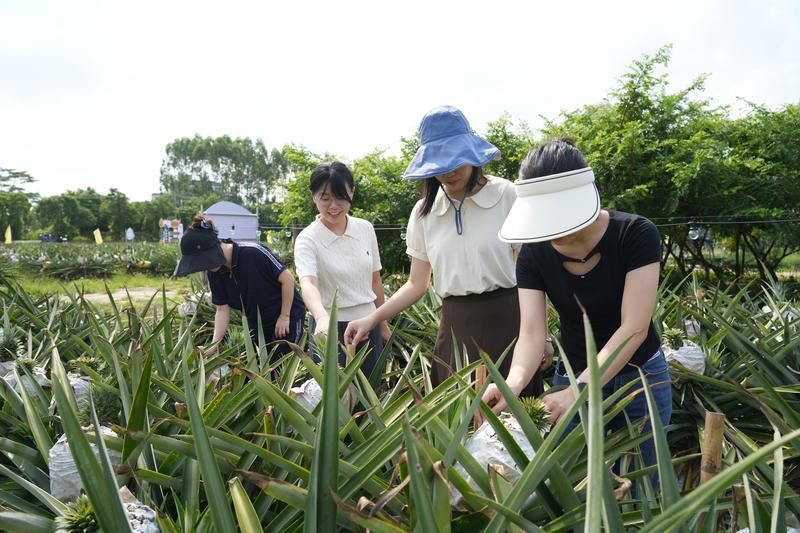 據(jù)介紹,營地目前總面積120畝,其中鳳梨種植約80畝,還種了黃晶果、油柑果、蛋黃果、嘉寶果等水果,并打造休閑營地、餐飲配套,增加互動體驗(yàn)。同時(shí),以鳳梨元素為主題,設(shè)置了造型各異的景觀小品和創(chuàng)意裝置,吸引游客拍照留念。