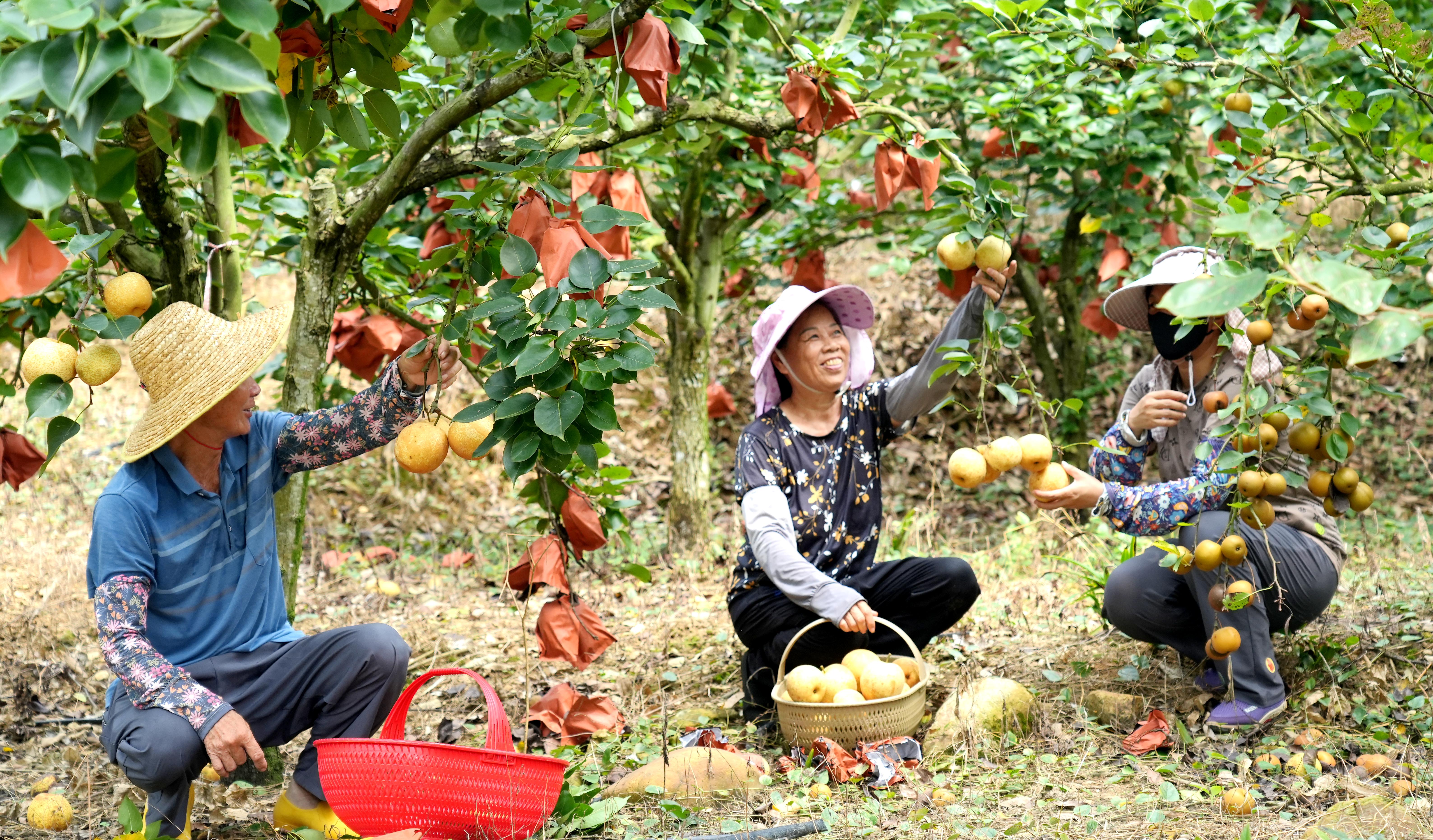 盛夏時節(jié),惠陽區(qū)沙田鎮(zhèn)東南一隅,市級自然資源保護區(qū)——金桔村,正迎來一年中最甜美的時節(jié)。60余畝青花梨果實綴滿枝頭,隱在綠葉與黃色果袋之下。微風(fēng)拂過,清甜的果香彌漫開來,沁人心脾。絡(luò)繹不絕的游客驅(qū)車前來,品嘗這盛夏的甘甜。這幅生動的場景,是當(dāng)?shù)匾劳猩鷳B(tài)稟賦,深耕特色農(nóng)業(yè),推動鄉(xiāng)村振興、助力“百千萬工程”的鮮活縮影。