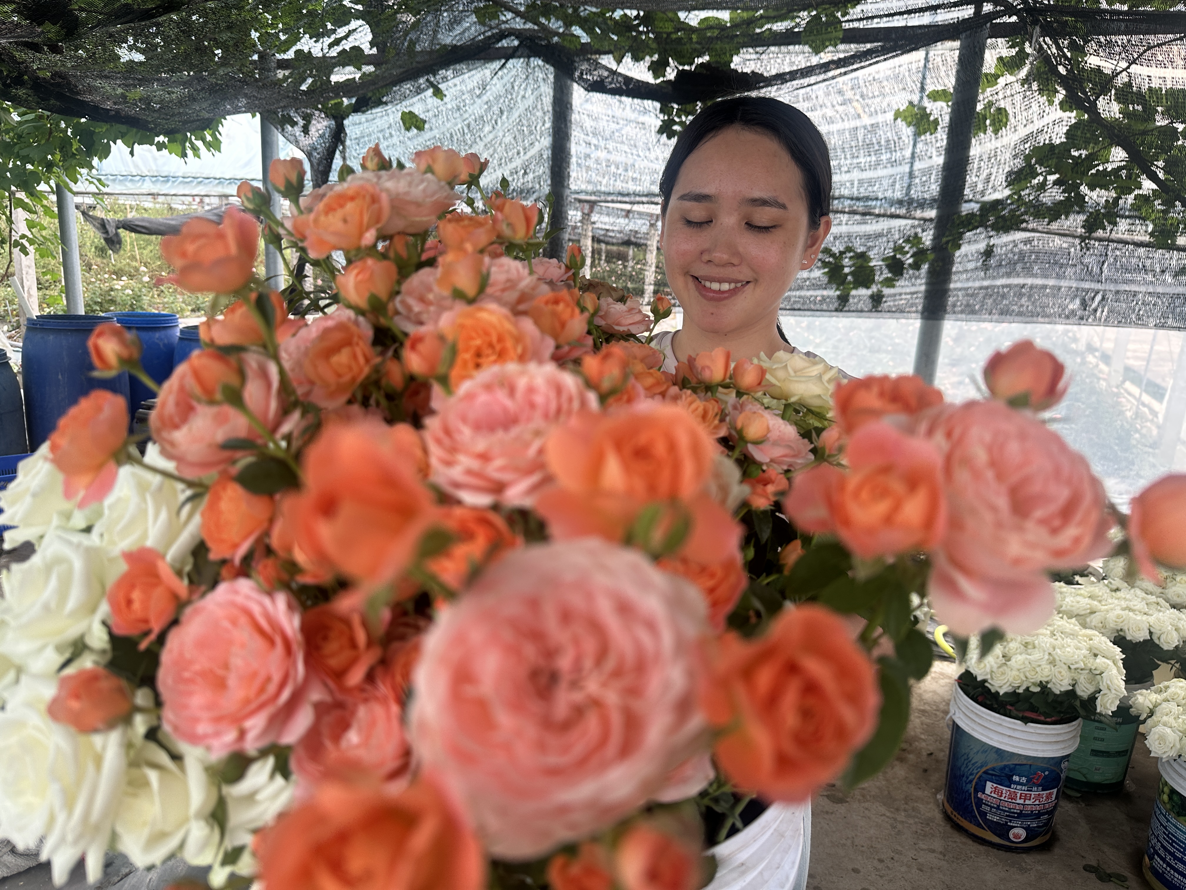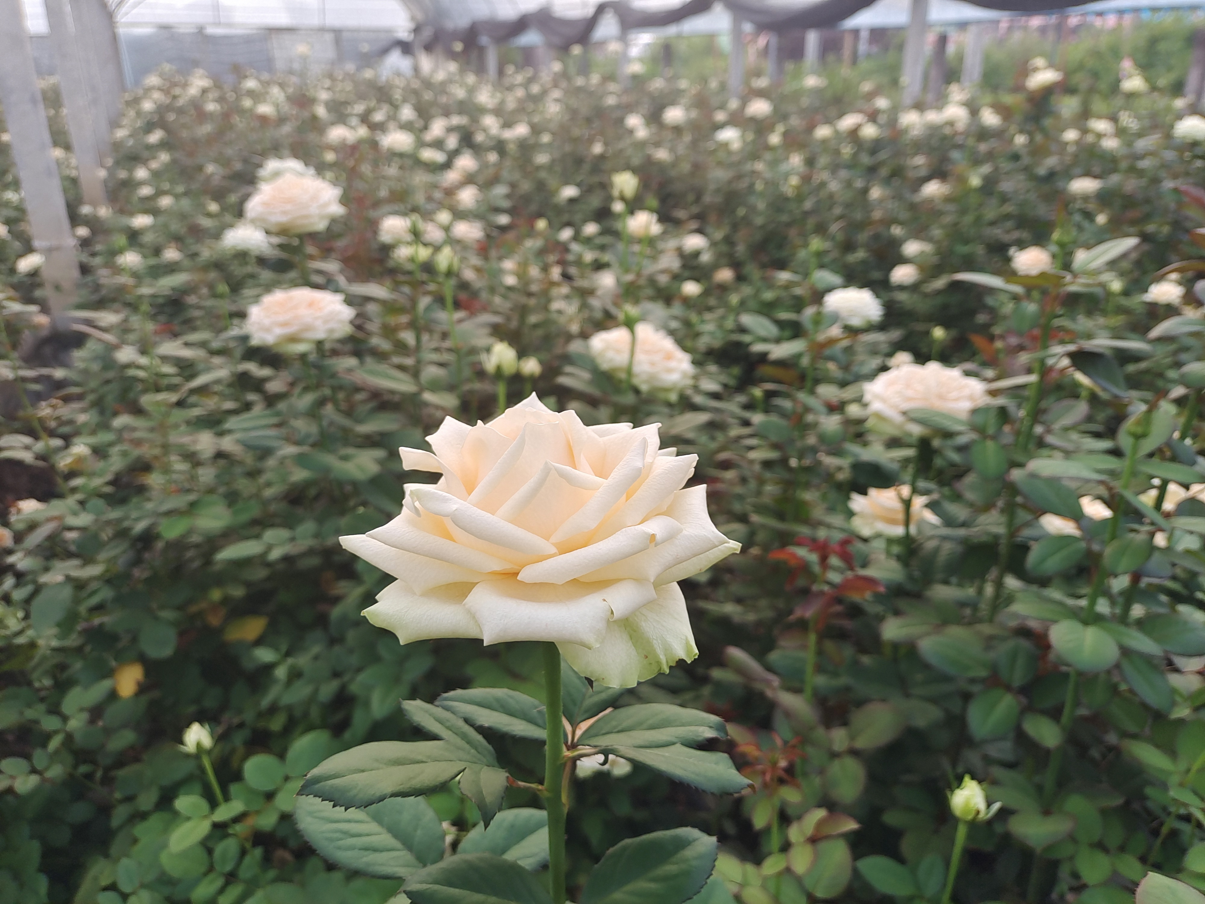 基地種植了近20個品種的玫瑰花,紅的、白的、橙的、玫紅色……每一款都令人愛不釋手。據(jù)玫瑰園管理人員介紹,玫瑰種植之路并非一帆風順。起初,這片土地因長期閑置,土壤肥力下降,雜草叢生。自接手后,面臨著諸多挑戰(zhàn):先是要投入大量資金和人力,對土地進行深翻、施肥,改善土壤結(jié)構,為玫瑰種植創(chuàng)造良好的基礎條件。玫瑰嬌貴,對環(huán)境要求極為苛刻。這里種植的玫瑰品種來自云南,為了在溫度、濕度、光照等方面達到類似云南種植的標準,園區(qū)特意搭建了適宜玫瑰生長的大棚。從種苗的選擇、培育,到日常的田間管理,技術人員都給予了全方位指導。