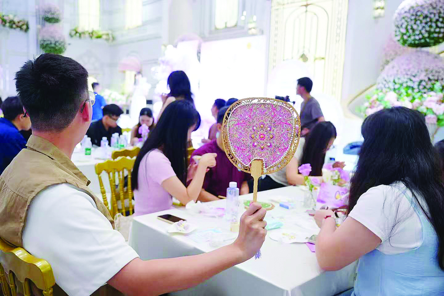 在溫馨雅致的“穿針乞巧”環(huán)節(jié)中,嘉賓們八人一組圍坐案前,凝神屏息,指尖輕捻紅絲,緩緩引線穿針,方寸之間,讓青年男女沉浸式感受民俗獨(dú)特魅力,在互動(dòng)中溯源千年浪漫,深化對(duì)七夕淵源與習(xí)俗的理解,既是對(duì)傳統(tǒng)技藝的致敬,亦是對(duì)匠心與美好的現(xiàn)代延續(xù)。一縷紅線、一枚細(xì)針,串起的不只是古今智慧,更是對(duì)幸福生活的巧思與期盼。