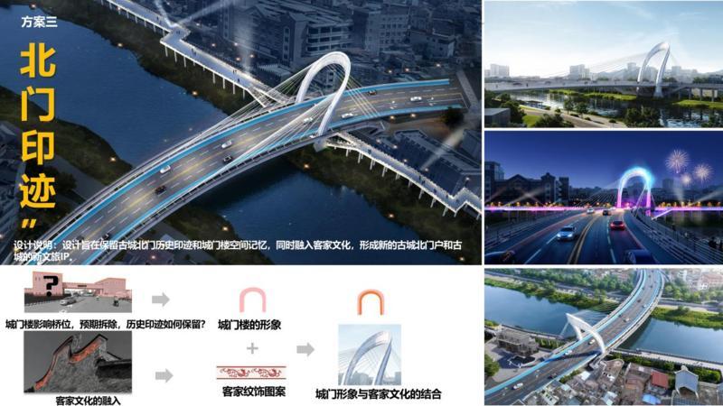 設(shè)計(jì)說明:設(shè)計(jì)旨在保留古城北門歷史印跡和城門樓空間記憶,同時(shí)融入客家文化,形成新的古城北門和古城的新文旅IP。